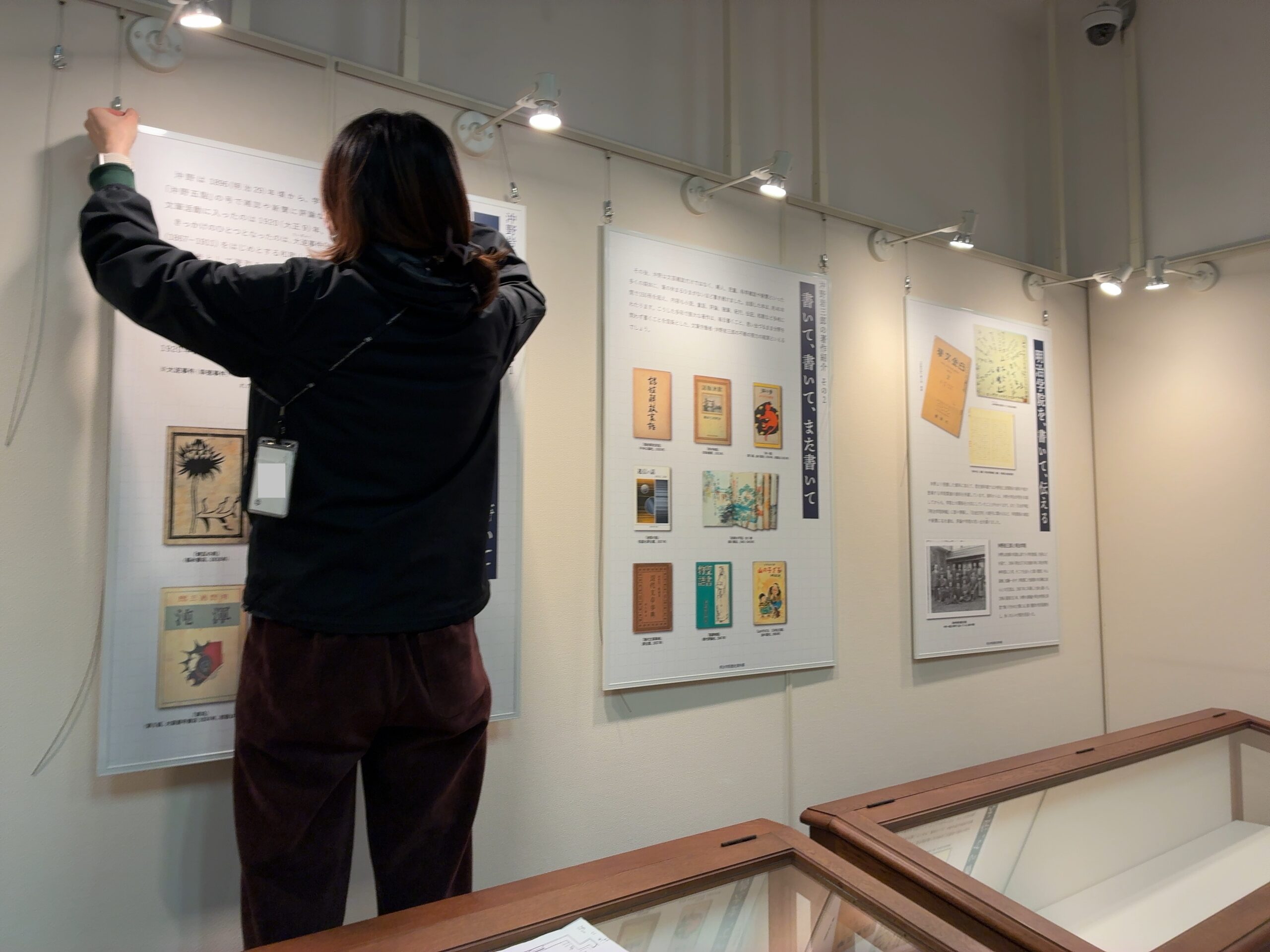 パネルの再設置、カッティングシートの見出し貼り、照明のライティングなど、展示資料を陳列する以外にも展覧会の準備は様々です。